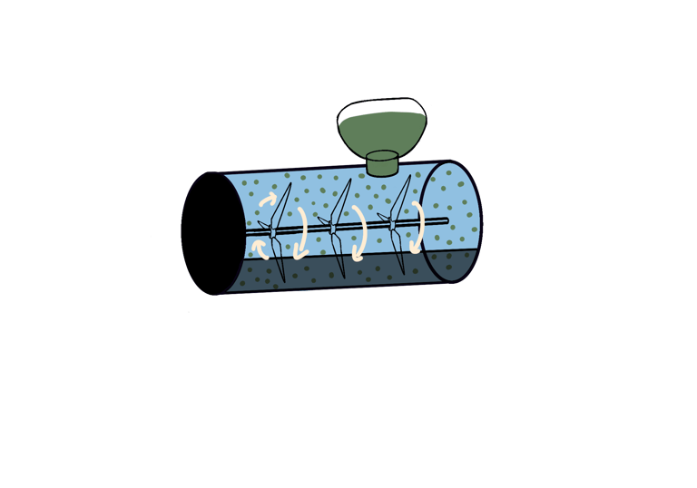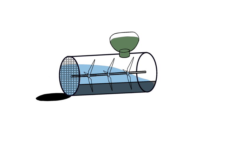 Propellers gently mix the water and moringa seeds to ensure they fully interact, allowing the seeds to bind to excess nutrients in the water. The filtered water is then released through a mesh screen, which traps the nutrients inside the system so they can be easily collected from a removable compartment below.